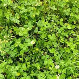白车轴草,豆科车轴草属的多年生草本植物,茎贴地匍匐;叶柄直立,小叶心形,边缘具细齿,叶脉明显,…