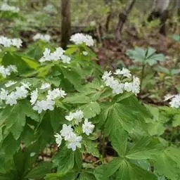 鹅掌草是毛莨科银莲花属的多年生草本植物。植株高40厘米;根茎近圆柱形;基生叶有长柄,叶草质,…