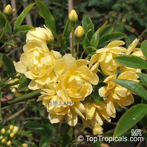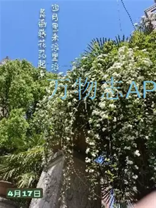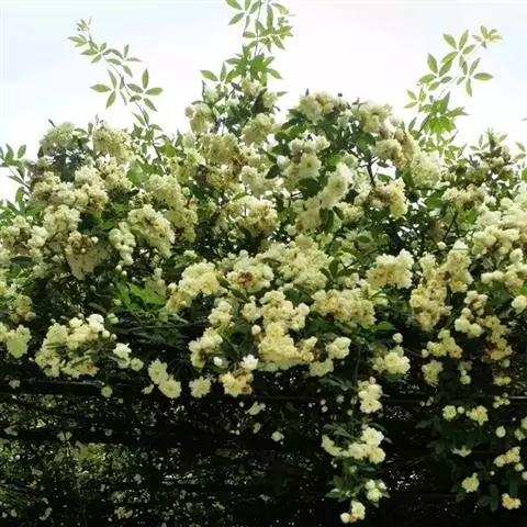 木香花(学名:Rosa banksiae Ait.)是攀援小灌木,高可达6米;小枝圆柱形,无毛,有短小皮刺;小叶3-5,叶片椭圆状卵形或长圆披针形,花小形,多朵成伞形花序,萼片卵形,花瓣重瓣至半重瓣,白色,倒卵形,花期4-5月。生溪边、路旁或山坡灌丛中,海拔500-1300米。