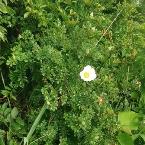 攀援灌木,有稀疏皮刺;小叶片3,卵状披针形,托叶早落,花单生,白色重瓣;花梗被稀疏针刺。