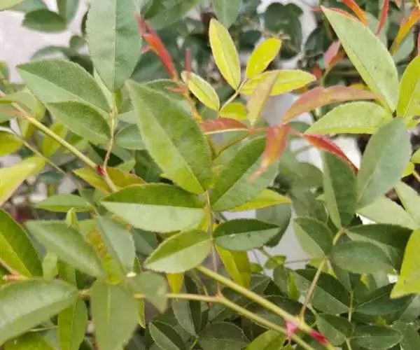 木香花是攀援小灌木植物,高可达6米;小枝圆柱形,无毛,有短小皮刺;老枝上的皮刺较大,坚硬,经栽培后有时枝条无刺。小叶3-5,稀7,连叶柄长4-6厘米;小叶片椭圆状卵形或长圆披针形,长2-5厘米,宽8-18毫米,先端急尖或稍钝,基部近圆形或宽楔形,边缘有紧贴细锯齿,上面无毛,深绿色,下面淡绿色,中脉突起,沿脉有柔毛;小叶柄和叶轴有稀疏柔毛和散生小皮刺;托叶线状披针形,膜质,离生,早落。