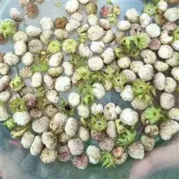 营养:黄毛草莓鲜果含有丰富营养成分,不仅富含糖、酸、蛋白质等,还富含矿物质元素,除个别矿物质元素略低于参比水果(草莓、葡萄、樱桃、苹果)外,其他所测矿物质元素远远高于参比水果;氨基酸种类齐全,总量较高,必需氨基酸占总氨基酸的35.22%,显著高于苹果、葡萄、草莓等,其中鲜味氨基酸谷氨酸的含量高达2.16克/千克。黄毛草莓鲜果还含有一些特殊香气成分,香气成分也是评价果实品质的重要指标,果味独特,口感极佳。