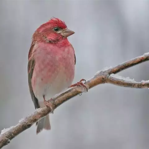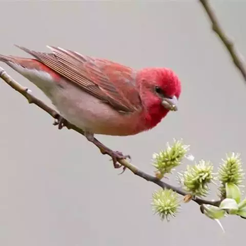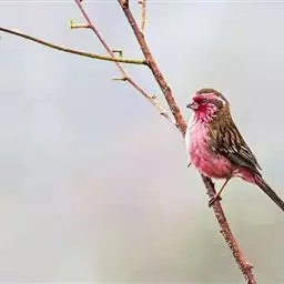 喜马拉雅白眉朱雀:小型鸟类,体长15-17厘米,体重24-35克。额基、眼先深红色,…