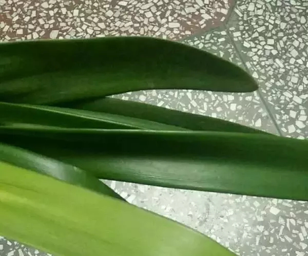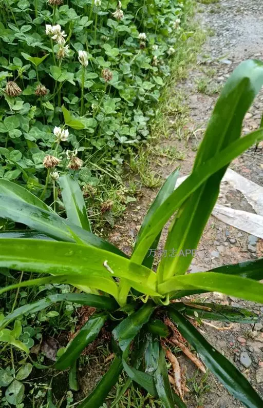 鳞茎近球形,直径5-7.5厘米,并有匍匐枝。叶6-8枚,花后抽出,鲜绿色,带形,长约30厘米,基部宽约2.5厘米。