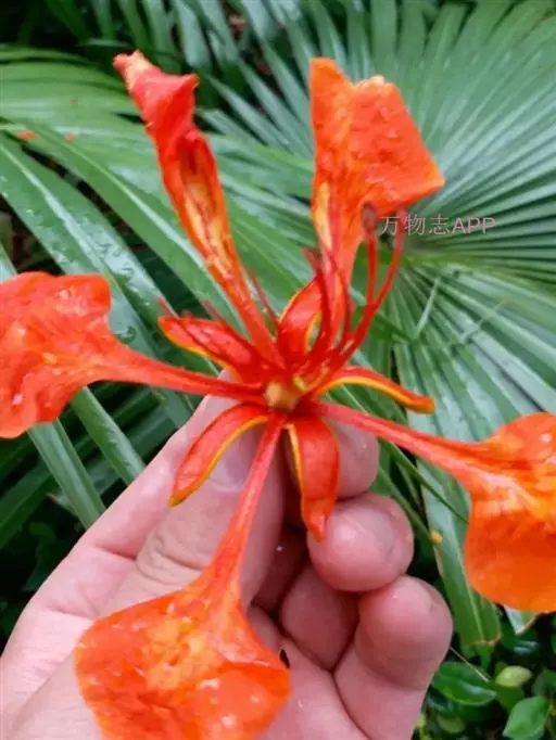 花之冠(FlowerRecord):花橙红色,具白色宽纵条纹。