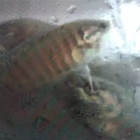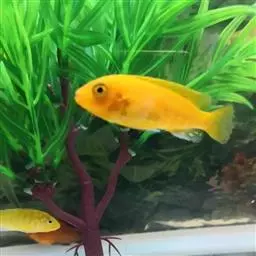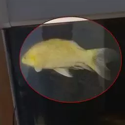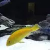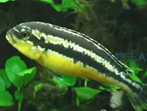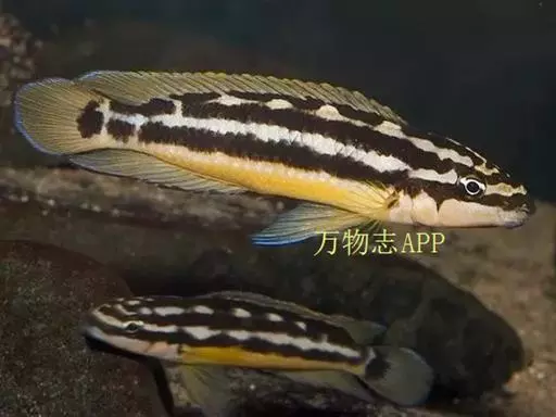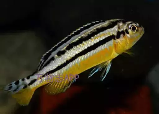 非洲凤凰鱼(Melanochromis auratus),身上的水平斑纹清晰可见。雄鱼只有在雌鱼出现的情况下才会呈现出保卫领域的行为,但一旦雌鱼扫兴而去,雄鱼也就会离开曾经保卫的领域。对于其他的雄鱼,非洲凤凰的雄鱼会表现出极强的攻击性,甚至试图杀死任何黑丽鱼属岩栖类的雄性。由于存在杂交的风险,它们不应该和其他的黑丽鱼属岩栖类混养在一起。非洲凤凰的基础色是明亮的黄色,上面并伴有一条黑色的水平条纹。成熟后雄鱼的腹部变多名为深褐色.