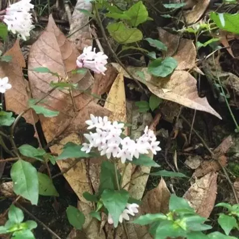 蔓九节是茜草科九节属的攀援或匍匐藤本植物。常以气根攀附树干或岩石;幼枝无毛或有粃糠状柔毛;幼树叶卵形或倒卵形,托叶膜质;圆锥状或伞房状聚伞花序顶生,苞片和小苞片线状披针形,花萼倒圆锥形,花冠白色,冠筒与裂片近等长,裂片长圆形;浆果状核果球形或椭圆形;花期4-6月;果期全年。因叶片紧贴着树干往上生长,宛如一条青龙上树,故又名“上树龙”。蔓九节分布在中国浙江、福建、台湾等省地,在日本、朝鲜、越南等国也有分布,生长在海拔70-1360米的平地、丘陵、山地、山谷水旁的灌丛或林中。喜温暖湿润,不耐寒,耐荫,适宜选用排水良好、富含有机质的砂质土壤。蔓九节在《世界自然保护联盟濒危物种红色名录》中属于无危。繁殖方法一般为扦插、压条、播种繁殖。据《福建药物志》中记载蔓九节“有祛风除湿,舒筋活络的功效。主治风湿关节痛,头风痛,手足麻木坐骨神经痛,腰肌劳损,