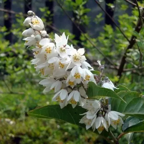 小花溲疏灌木,高约2米;老枝灰褐色或灰色,表皮片状脱落。叶纸质,卵形、椭圆状卵形或卵状披针形。…