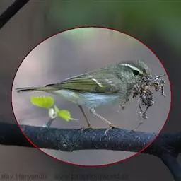 极北柳莺:体长11-13厘米,体小偏灰橄榄色,具明显的黄白色长眉纹,眼先及过眼纹近黑。上体概呈灰橄…