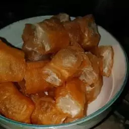 原料:面粉400克,面肥200克,去皮菠萝300克,白糖40克,炼乳20克,食用碱面8克用温水溶解。
