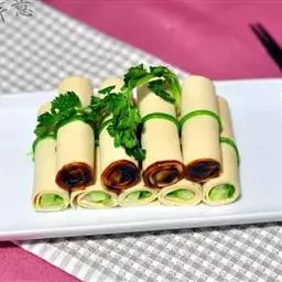 腐皮卷素菜是一道广东省的传统名菜,属于粤菜系。把香菇用清水浸软,去蒂,切细丝,胡萝卜,榨菜分别洗净…