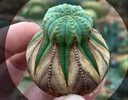 布纹球,是大戟科大戟属植物。植株小球形,表皮灰绿色,中有红褐色,…