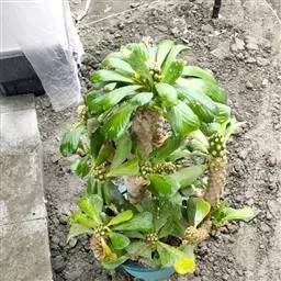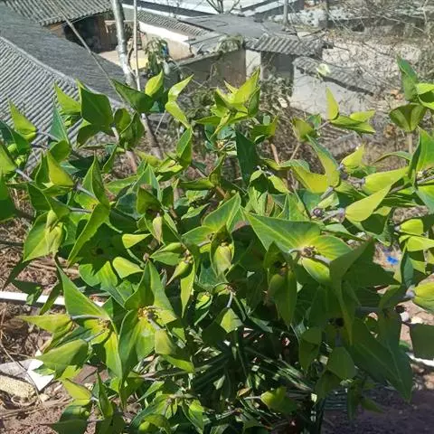 俏黄栌(Euphorbia cotinifolia),半常绿灌木或小乔木,具乳汁。原产墨西哥及危地马拉。扦插,压条无性繁殖。大戟科大戟属。原产墨西哥及危地马拉。叶柄长,叶片薄,宽椭圆形至近圆形,长11厘米,宽约8.5厘米,红色至紫红色。顶生圆锥花序松散。