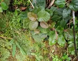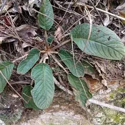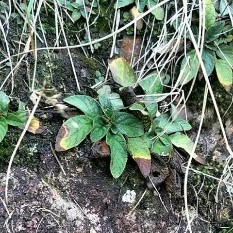 多年生草本。根状茎长2-7厘米,直径5-13毫米。叶丛生,具长柄;叶片椭圆形或卵状椭圆形,长6-12厘米,宽3-8厘米,顶端钝或圆形,基部浅心形,偏斜或楔形,边缘具小锯齿或全缘,上面密被短柔毛,下面密被褐色绵毛,侧脉每边6-8条,不明显成网状;叶柄长2-8厘米,密被褐色绵毛。