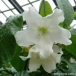 炮弹果,中药名。为夹竹桃科植物清明花Beaumontia grandiflora Wall.[Ec…