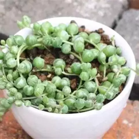 珍珠吊兰因鼓鼓、饱满翠绿的椭圆形小叶子形似珍珠状而得名。又名翡翠珠、 佛珠吊兰、翡翠珠、绿之铃,绿铃。…