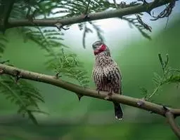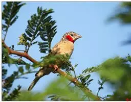 红眉朱雀:体长15厘米,是一种中等体型的朱雀。上体褐色斑驳,眉纹、脸颊、胸及腰淡紫粉,臀近白。…