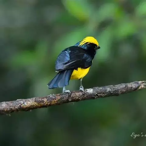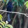 发冠卷尾是中型鸟类,体长28-35厘米。通体绒黑色缀蓝绿色金属光泽,额部具发丝状羽冠,…