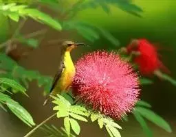 凤头雀莺:小型鸟类。体长9-10厘米,雄鸟呈毛茸茸的紫色和绛紫色,顶冠淡紫灰色,额及凤头白色,尾全蓝。…