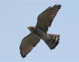 幼鸟头、后颈和上背土褐色,具细的棕白色羽干纹,下背至尾上覆羽淡棕皮黄色,具宽的褐色羽缘,尾土灰褐色,具宽阔的皮黄色端斑;飞羽黑褐色,内翈基部具不规则的灰白色横斑,尖端淡黄白色,翅上覆羽暗土褐色,内侧稍淡和具棕白色羽缘,在翅上形成细的淡色横带,飞翔时极明显。下体棕褐色,颏和喉较浅淡;胸、腹和两胁缀以棕色纵纹,下腹和尾下覆羽淡棕色,翅下覆羽和腋羽棕色,具褐色羽缘。