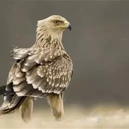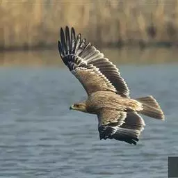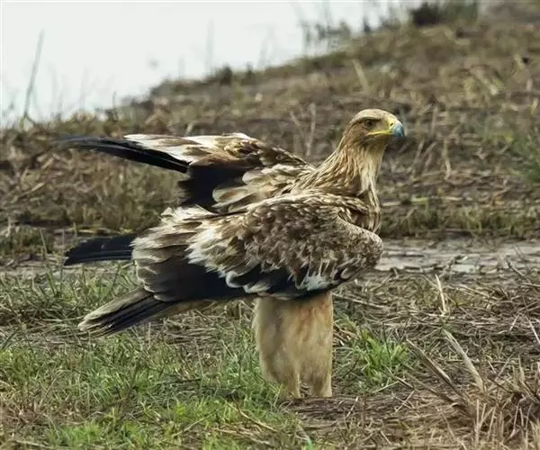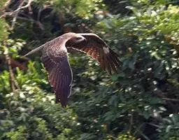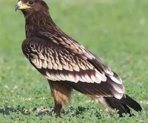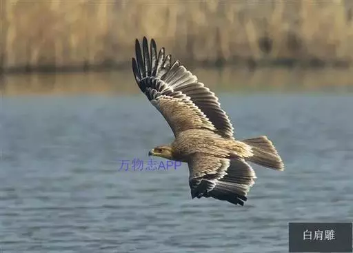 白肩雕(学名:Aquila heliaca):又名御雕,是大型猛禽。体长73-84厘米。体羽黑褐色,头和颈较淡,肩部有明显的白斑,在黑褐色的体羽上极为醒目,很远即可看见,这是区别其他雕的主要特征。滑翔时两翅平直,滑翔和翱翔时两翅亦不上举成‘V’字形;同时飞翔时尾羽收得很紧,不散开,因而尾显得较窄长。幼鸟头皮黄褐色,背具黄褐色斑点,飞翔时尾常散开成扇形。