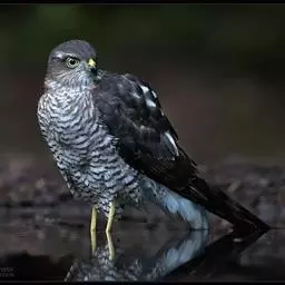 虹膜红褐色,幼鸟为暗褐色,嘴黑褐色,嘴基铅蓝灰色,蜡膜和趾黄色,爪黑色。