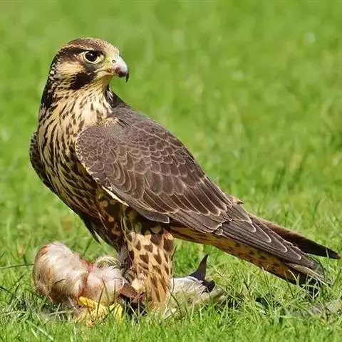 主要以啮齿类、野兔、雉鸡、石鸡、鹌鹑、野鸭、斑鸡等小型和中型哺乳动物和鸟类为食,也吃爬行类和动物尸体。觅食活动主要在白天,多在河谷、沼泽、草地和林间空地等开阔地方觅食。觅食方式除站在岩石上、树上或地上等待猎物出现时突袭外,也常在低空和高空飞翔巡猎。