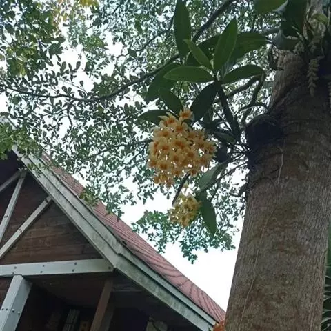 贴树栽植。 在选好的树上,按30~40厘米在树上砍去一部分树皮将种蔸涂一薄层牛粪与泥浆混合物,然后塞入破皮处或树纵裂沟处贴紧树皮,再覆一层稻草,用竹蔑捆好。