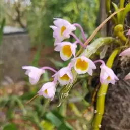 玫瑰石斛是兰科石斛属的多年生附生草本植物。茎斜下或下垂,青绿色,圆柱形,…