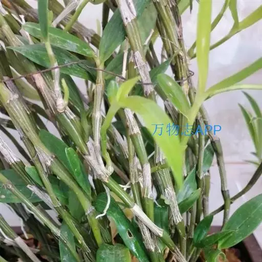 细叶石斛:茎直立,质地较硬,圆柱形或有时基部上方有数个节间膨大而形成纺锤形,通常分枝,具纵槽或条棱。…