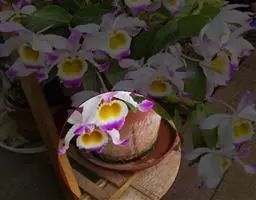 在我国,少数民族众多,石斛民俗作为一种文化现象,它源于自然、源于生活,是先民在长期与大自然的接触中逐步形成和成长起来的。在云南的傣族地区,人们对花尤为崇拜,石斛以其性能和特征,被当地人所崇敬,它寄托了傣族人民美好的愿望与情感,人们将它种植于自家的房顶上,而且都是些非常显眼的地方,如房顶中央,房檐的拐角处,这为傣家竹楼增添了一道亮丽的风景,同时也形成了石斛的特色栽种。追其根源,这一特色栽种源于一个古老的传说。相传在傣历新年(泼水节)的第三天,隆重的“赶摆”之日,至高无尚的太阳神将来到人间查看民情,了解百姓的生活,给人们带来新生和希望。为此,傣族人民对太阳神万分感激,当太阳神要离去时,出现了一位美丽的人间女神,手捧着金色灿烂的“蛋花”(石斛)跪到太阳神面前,将“蛋花”作为礼物送给太阳神,从此,这花便成了吉祥之物、喜庆之物,之后,傣家人民便不惜险阻地从深山中把“蛋花”取回家里,栽于阳光最易照射到的地方一屋顶,等到四月新年时,好让它们开出一串串一年仅能灿烂一次的美丽花朵,以迎接新年,迎接太阳神的到来。爱美的傣家姑娘也都纷纷把“蛋花”取下,作为头饰或衣饰,插在自己的头上或衣物上,表示着对太阳神的期待和对未来美好、幸福的期待。在国外,石斛被认为“秉性刚强,忠厚可亲”,它有着“欢迎你,亲爱的”花语,并且在每年6月19日时,人们都将石斛兰送给父亲,故石斛又被称为“父亲节之花”。而石斛的主要出产国泰国,航空公司把石斛制成的胸花赠送给乘客,表示着欢迎,表示着祝福。