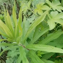多年生草本。株高约100厘米,茎直立,丛生,四棱形。地下具匍匐状根茎。叶亮绿色,披针形,长达12厘米。先端渐尖,缘有锐齿。
