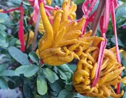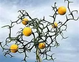 香橼为小乔木或灌木状;株高达5米;幼枝、芽及花蕾均暗紫红色;茎枝多刺,长达4厘米;单叶,…