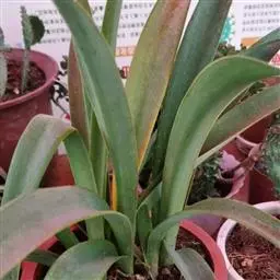 3、盆土缺氧:君子兰孕蕾期根系需氧量大,如果盆土过细或长期处于湿度较大的状态,就会降低盆土通透性,从而出现缺氧,造成夹箭现象。