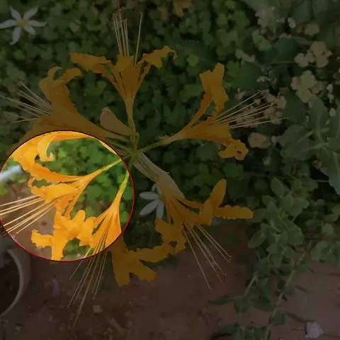 叶片宽度一般不超过50毫米,很少达到90毫米的。花的形状有细瓣的, 也有宽瓣的,象喇叭一样。里侧的花瓣一般比外侧的花瓣要宽。花的颜色一般是桔色的,有黄白色的内芯。当然也有从黄白色系到暗红色系之间的颜色的花。非常淡的和非常深的颜色的花是比较稀少的。开花时一个花苞里一般有20朵左右的花,也有达到40朵的。浆果中的种子有1-20颗,一般不到10颗。