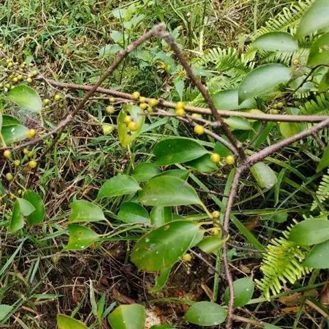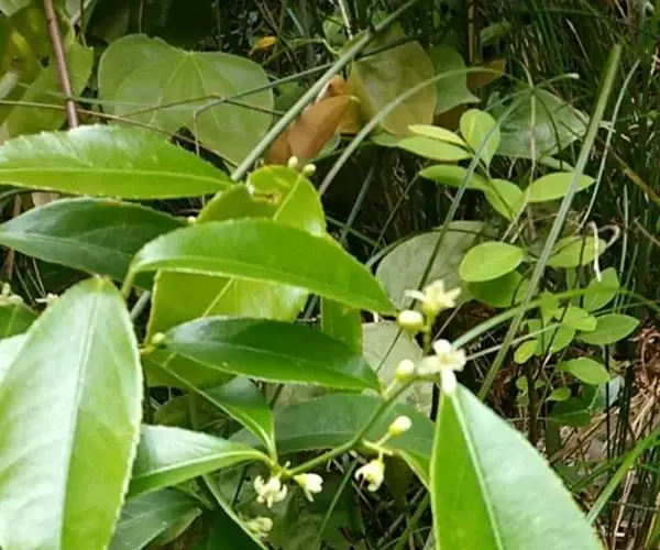 青江藤又名野茶藤、黄果藤。常绿木质藤本、新枝皮孔不明显。叶互生;叶柄短;叶薄革质,长宽椭圆形或椭圆状披针形,长7-12cm,宽3-5cm,侧脉间网脉平行横展。顶生聚伞状圆锥花序窄长,腋生花序则仅有1-3花;花淡绿色,直径达5mm,5数;雄蕊着生杯状花盘边缘;雌蕊不与花盘合生,子房长卵形,3室,每室2胚珠。蒴果卵状,长达1cm,3裂,仅中央有种子1颗。种子有橙红色假种皮。