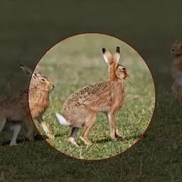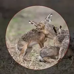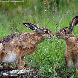 野兔是独自或成对生活的,一般都是害羞的动物,并会在春天改变其行为模式。雄兔会在白天互相追逐,来显示自己的优越性。而雌兔则会“拳击”雄兔,目的似乎是表示它们未有准备交配,或是测试雄兔的决心 。(《野兔雪地全速飞奔》相册参考资料 )