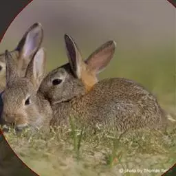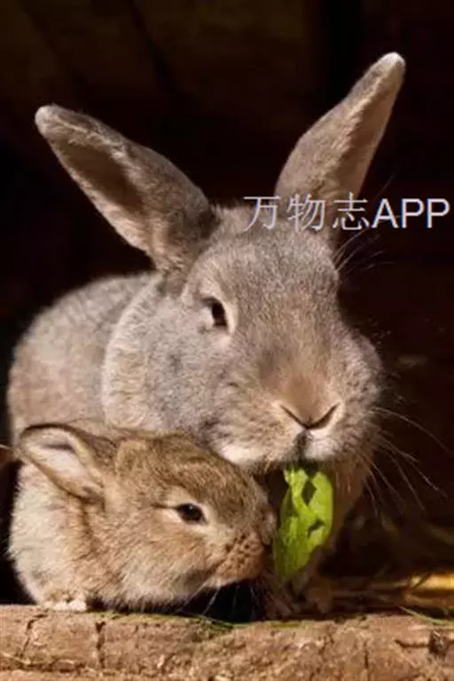 5、【幼兔特征】家兔的新生兔宝宝们属于晚成性。出生时候全身裸露无毛,眼睛和耳朵未开,基本没有行动能力,无法自行调节体温。家兔的幼兔宝宝15天左右才睁开眼睛,20天左右才可吃少量苜蓿草并随母兔外出活动。而野兔的新生兔宝宝们刚好相反属于早成性,生出来就全身有毛,眼睛可看,耳朵可听,小野兔出生3天就可以走路,并且能自行进食。