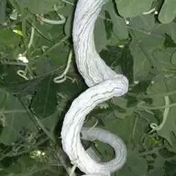 蛇瓜一年生攀援藤本;茎纤细,多分枝,具纵棱及槽,被短柔毛及疏被长柔毛状长硬毛。蛇瓜的根系发达,侧根多,易生不定根,茎蔓细长,长可达5~8米,茎五棱、绿色,分枝能力强,叶片绿色,掌状深裂,裂口较圆,叶面有细绒毛,花冠白色,花单性,雌雄同样异化,雄花多为总状花序,蕾期为青绿色,将开时浅黄绿色,雄花的发生早于雌花,一般雌花于主蔓20~25节处开始着生,以后主蔓、侧蔓均能连续着生雌花。