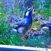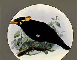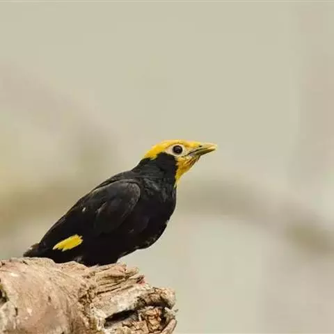 金冠树八哥为椋鸟科树八哥属的鸟类。体长约23厘米,闪辉黑色。特征为具翼斑及颏黄色,脸颊裸露皮肤粉黄色。…
