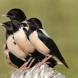 粉红椋鸟:中等体型,成鸟体长19-22厘米,体重60-73克,飞羽、尾羽为亮黑色,雌鸟与雄鸟毛色相似,…