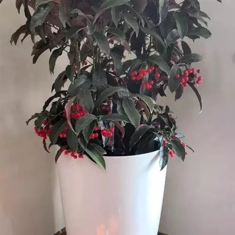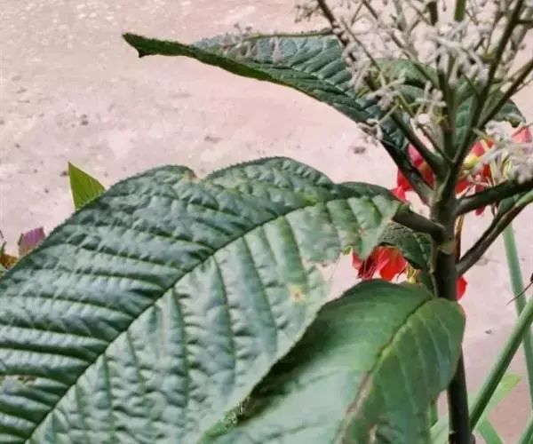 通常高1~3米;根粗壮,外皮黄棕色,内皮黄色。叶通常集生于枝顶,互生,纸质,阔椭圆形或长椭圆形,长20~45厘米,宽8~20 厘米,顶端渐尖,基部渐狭而成一短柄,边缘有整齐的细锯齿,背面通常紫红色,有时淡绿色。春夏开花。圆锥花序顶生,长20~30厘米;花白色或淡紫红色;萼5裂,裂片近三角形,长约1.5毫米;花冠5深裂,裂片卵状长圆形,长3~4毫米;雄蕊5枚,着生于花冠裂片的基部并与其对生;子房上位,花柱线形。果球形,成熟时红色,具细长的柄。