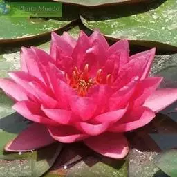红花睡莲,多年生浮水植物。叶浮于水面,卵形,革质,表面绿色,背面紫红色,幼叶红色,花昼开夜合,浮于…