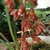 花葶从假鳞茎基部穿鞘而出,近直立、平展或外弯,长60-80厘米;总状花序具10-20朵或更多的花;花苞片卵状三角形,长约3毫米;花梗和子房长3-4厘米;花直径7-9厘米,无香气;萼片和花瓣苹果绿色或黄绿色,有红褐色纵脉,唇瓣淡黄色,中裂片上有深红色的锚形斑(或V形斑及1条中线);萼片狭倒卵状长圆形,长4-5厘米,宽1.4-1.6厘米。