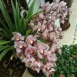 上盆(或翻盆)时间一般在春季3-4月或秋季10-11月。花盆以口小、盆深、底孔大的为佳。新从山上挖来的野生苗需理植于瓦盆(泥盆)中,这样兰花泥易干,通气性好.容易发根;2-3年后方可换人紫砂盆或瓷盆。兰花种植(在盆中)的方法与一般花卉不同,尤其是名种兰花,翻种移盆必须洗根。方法足将根浸入清水中,用旧牙刷或毛笔轻轻洗刷,切勿用力过大伤根;用剪刀将残叶、黄叶、断裂根、发黑腐烂根剪去,注意勿伤幼芽。然后将处理好的植株放在阴凉通风处晾干,待根部发白并显细小皱纹柔软时,再植入盆中。