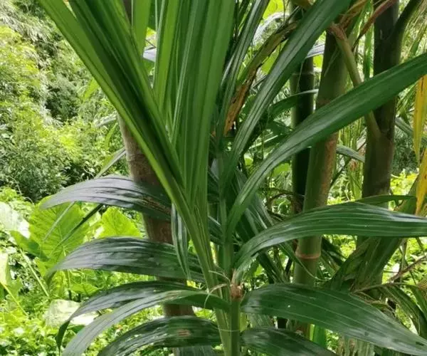 三药槟榔是一种热带或南亚热带繁茂生长的绿阴树种,茎干挺拔强健,枝叶常年青翠,形若翠竹,耐阴性强,挂果期长。既有南国热带风情的优美叶态,又有橙黄、赭红、累累果实的内在情调,是一种极为珍贵的观叶、观花、观果植物。