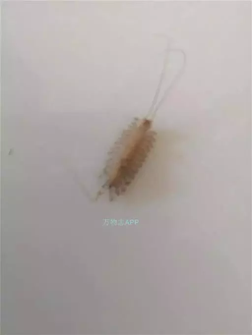 蚰蜒头部最前端生有两根触角,长度与体长基本相同,整根触角从根部到末端逐渐变细,根部直径约为220um,末端极细且柔软。蚰蜒的触角呈分节的鞭状结构,在生存中起到感受环境内温湿度、气味和机械振动的作用,是蚰蜒寻找栖息场所,识别环境中存在的危险的重要器官。