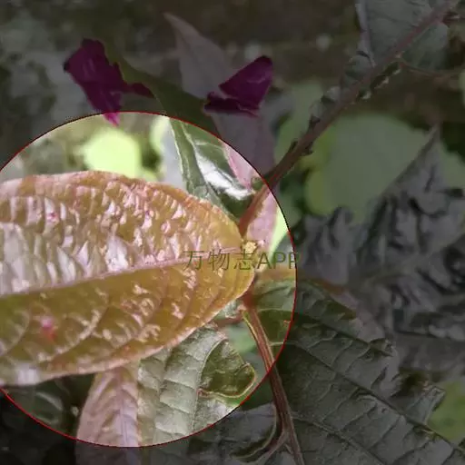 危害紫苏叶子。6-8月天气干旱、高温低湿时发生最盛。红蜘蛛成虫细小,一般为橘红色,有时黄色。红蜘蛛聚集在叶背面刺吸汁液,被害处最初出现黄白色小斑,后来在叶面可见较大的黄褐色焦斑,扩展后,全叶黄化失绿,常见叶子脱落。