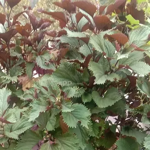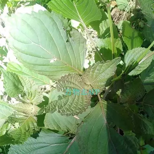 紫苏(学名:Perilla frutescens (L.) Britt. ),别名:桂荏、白苏、赤苏等;为唇形科一年生草本植物。具有特异的芳香,叶片多皱缩卷曲,完整者展平后呈卵圆形,长4至11厘米,宽2.5至9厘米,先端长尖或急尖,基部圆形或宽楔形,边缘具圆锯齿,两面紫色或上面绿色,下表面有多数凹点状腺鳞,叶柄长2至5厘米,紫色或紫绿色,质脆。嫩枝紫绿色,断面中部有髓,气清香,味微辛。