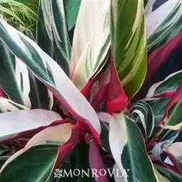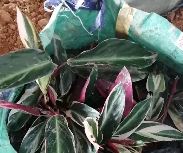 水竹芋为竹芋科多年生草本植物,植株高可达2米。叶互生,叶片卵形,叶色青绿,叶缘紫色,上被白粉,叶片…